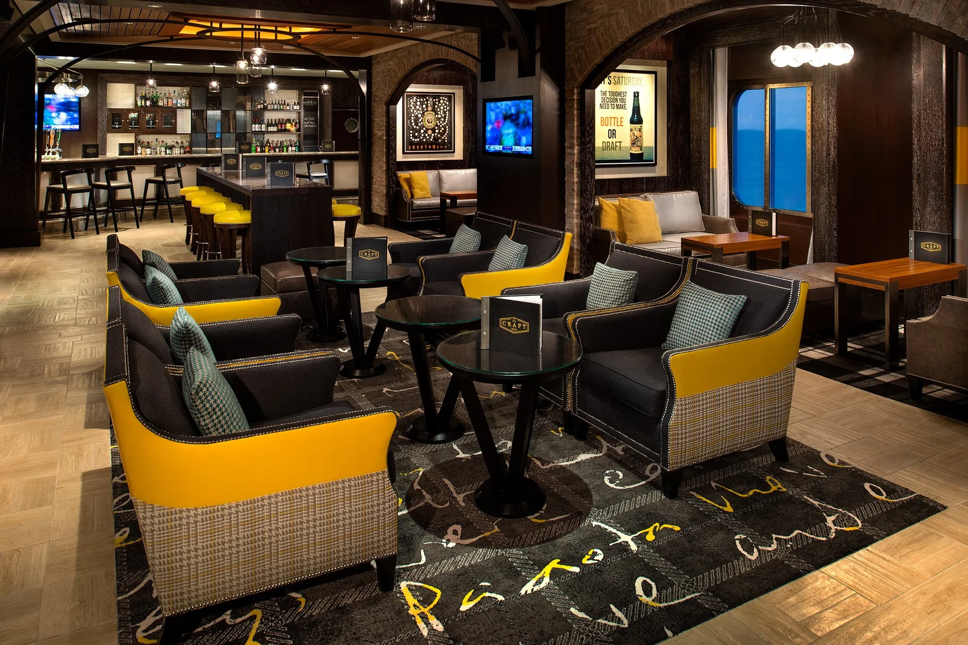 The mission was to create a distinctive venue branding for Craft Social, a new restaurant on Celebrity Cruises as part of The Celebrity Revolution. The venue aimed to attract patrons by offering over 40 craft beers, wines, cocktails, comfort food favorites, flatscreen TVs, and inviting seating. The goal was to establish an engaging and memorable brand identity that resonated with both the casual, cozy atmosphere and the sophisticated luxury associated with Celebrity Cruises.