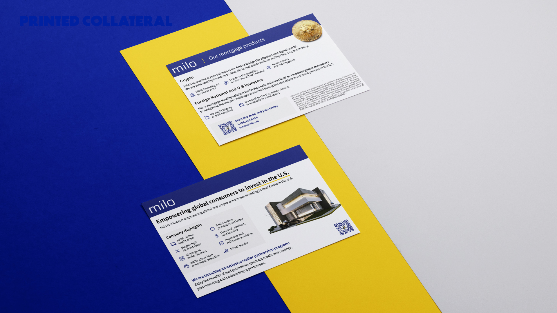 As Lead Art Director at Milo, I leveraged a blend of creative vision and strategic execution to position the company as a trailblazer in the mortgage industry. By maintaining a strong brand identity and delivering impactful designs across print, digital, and experiential platforms, I contributed to Milo’s mission of providing innovative mortgage solutions to global consumers.
